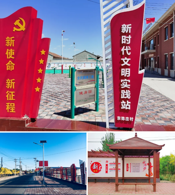 工作组扎实推进美丽村庄“六化”“六有”建设,便民设施优化提升,村居环境显著改变。硬化道路11.592千米、30334平方米村庄道路硬化率100%,安装太阳能路灯170盏,种植绿化树1500棵改建排污管道7000米修整加宽道路约4.2公里平整田间路约3.5公里改厕265户,改建健身广场1000平方米,清整硬化垃圾场4处,天然气普及率100%,有线电视、网络全部进村。同时新建党群服务中心700平方米,并配置会议桌椅、安装LED屏、宣传展板打造文化休闲长廊400米,绘画文化墙2000平方米。截至目前东陈庄村基础设施水平和环境卫生状况显著改善成功创建“五好党支部”“文明村”“平安村”,村民们致富奔小康的积极性、主动性明显增强全村群众的获得感、幸福感、自豪感大幅提升。